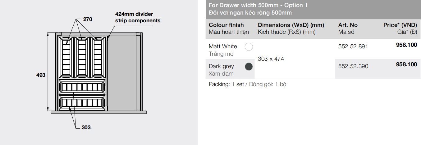 - Chú ý lựa chọn khay chia muỗng nĩa phù hợp với kích thước ngăn tủ bếp.