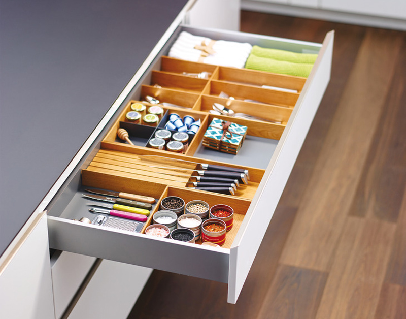 Dựa trên thiết kế của tủ bếp để lựa chọn chất liệu khay chia muỗng nĩa phù hợp. Không gian bếp theo phong cách hiện đại nên dùng khay chia nhựa hoặc kim loại. Phong cách Tân cổ điển hay Bắc Âu thì nên dùng khay gỗ sồi.